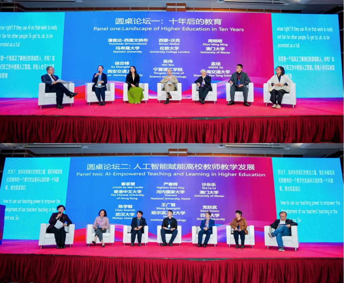 Punchada Sirivunnabood from Mahidol University, Simon Walker from University College London, Zhou Mingming from the University of Macau, Xu Zhongfeng from Xi’an Jiaotong University, Wu Wei from Ningxia Institute of Science and Technology, and Meng Jia from Shanghai Jiao Tong University held discussions around “Education in Ten Years” in a roundtable forum chaired by Sun Hua. Qin Jiahui from the Chinese University of Hong Kong, Nghiem Xuan Huy from Vietnam National University, Hanoi, Chen Xuemin from Wuhan University, Wang Guangzhi from Harbin Institute of Technology, Dang Yuewu from Sichuan University, and Sha Lele from the University of Macau discussed “AI-Empowered University Teachers’ Teaching Development” in a roundtable forum chaired by Wang Yishu from Jilin University.